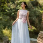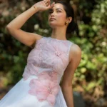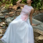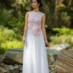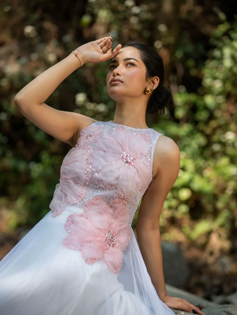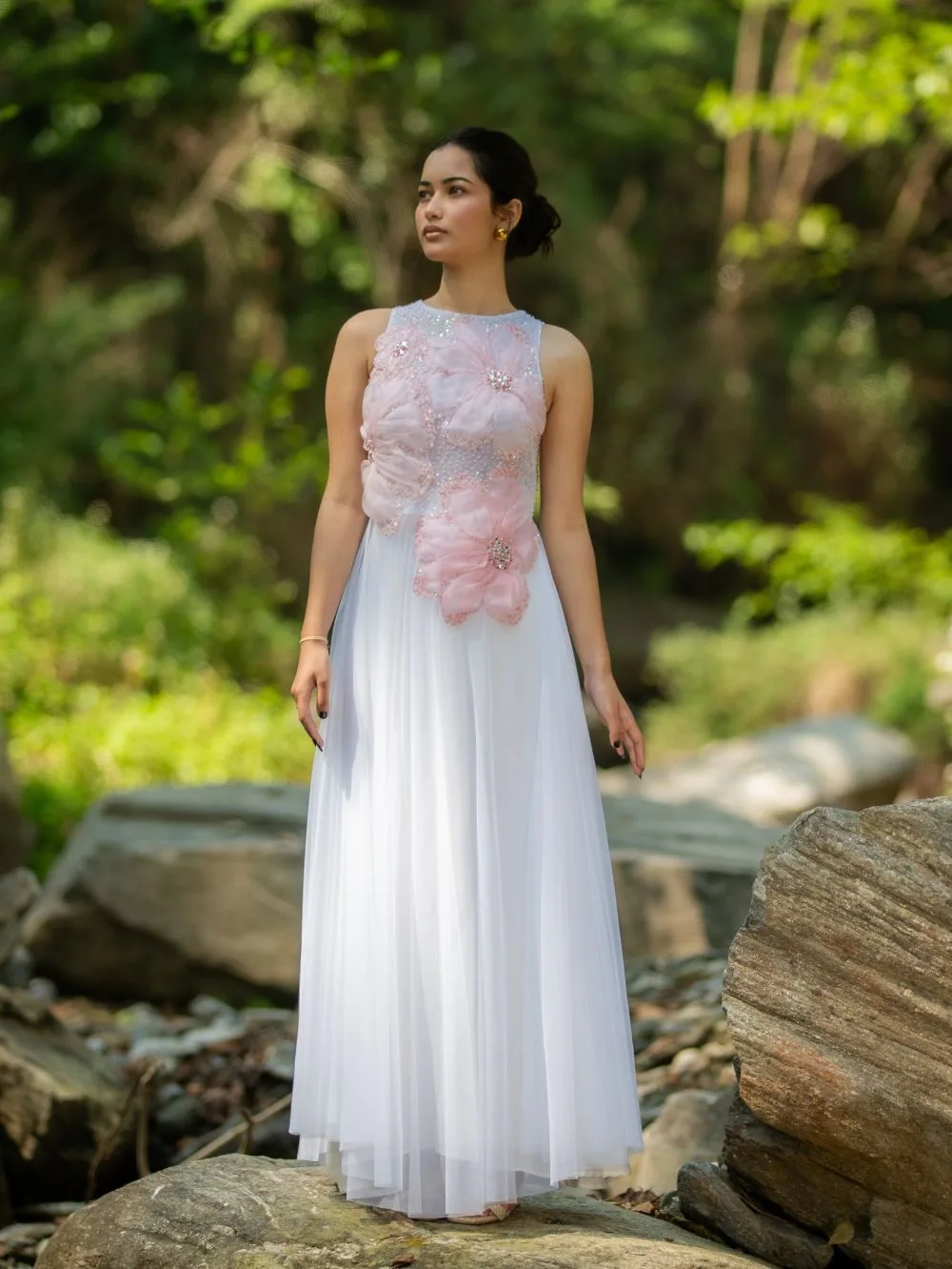 Dawn Petal DressDress in luminous silk and net, adorned with 3D organza flowers, pearls and crystals, celebrating light, bloom, and artisanal grace.