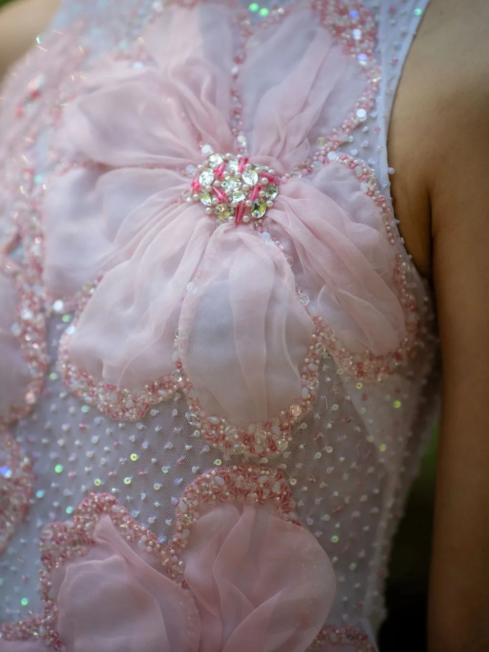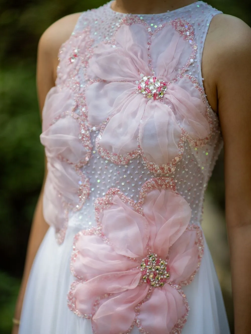 Organza 3D flowers with crystals – Tailored fit – hand embroidery