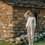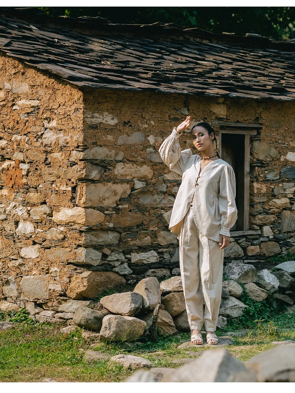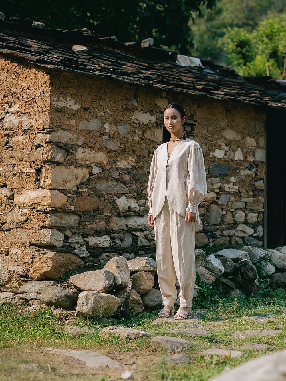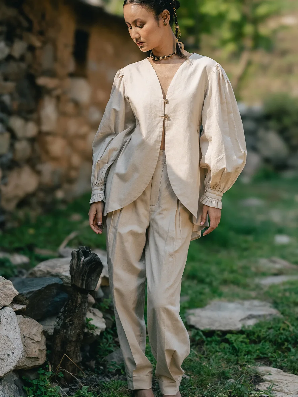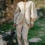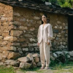 Himalayan Serenity PantsOrganic Linen cotton pants structured yet relaxed , are secured with a magnetic closure an innovative touch that blends modernity with grace.